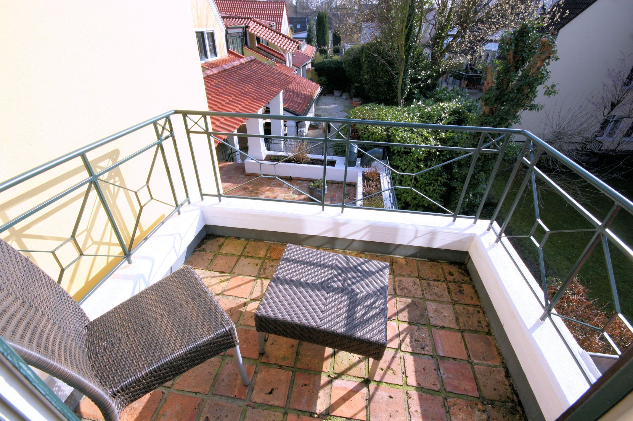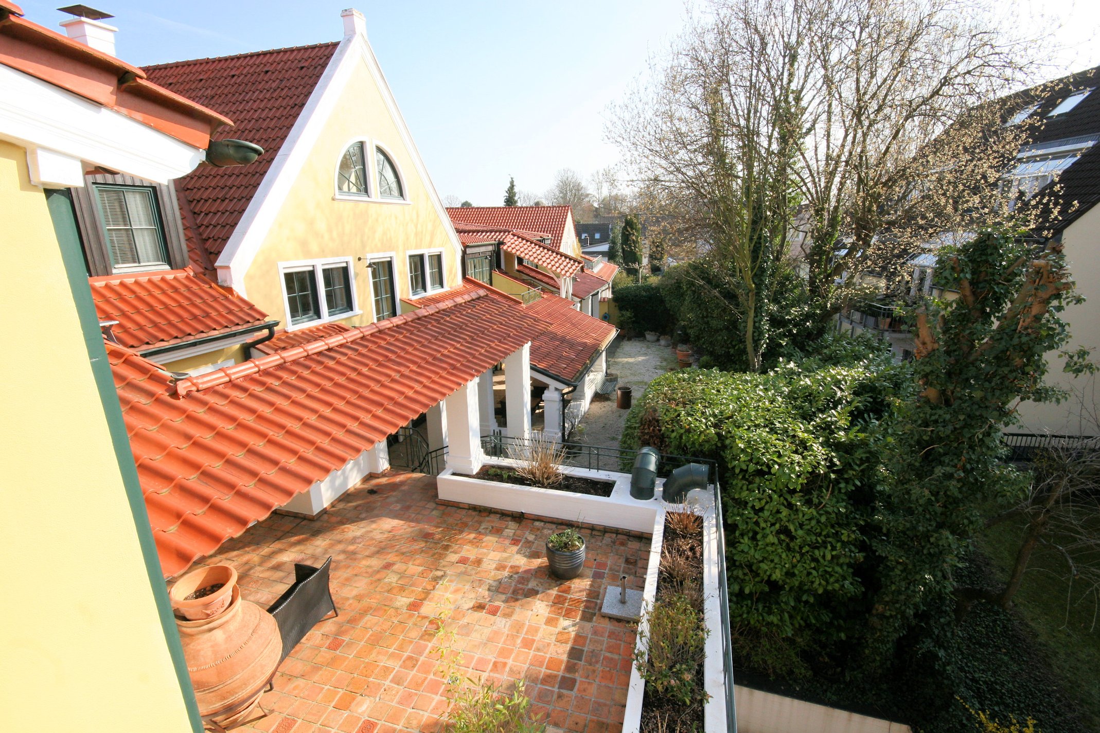zu den Wohnungen gehören entweder Balkone oder Terrassen.