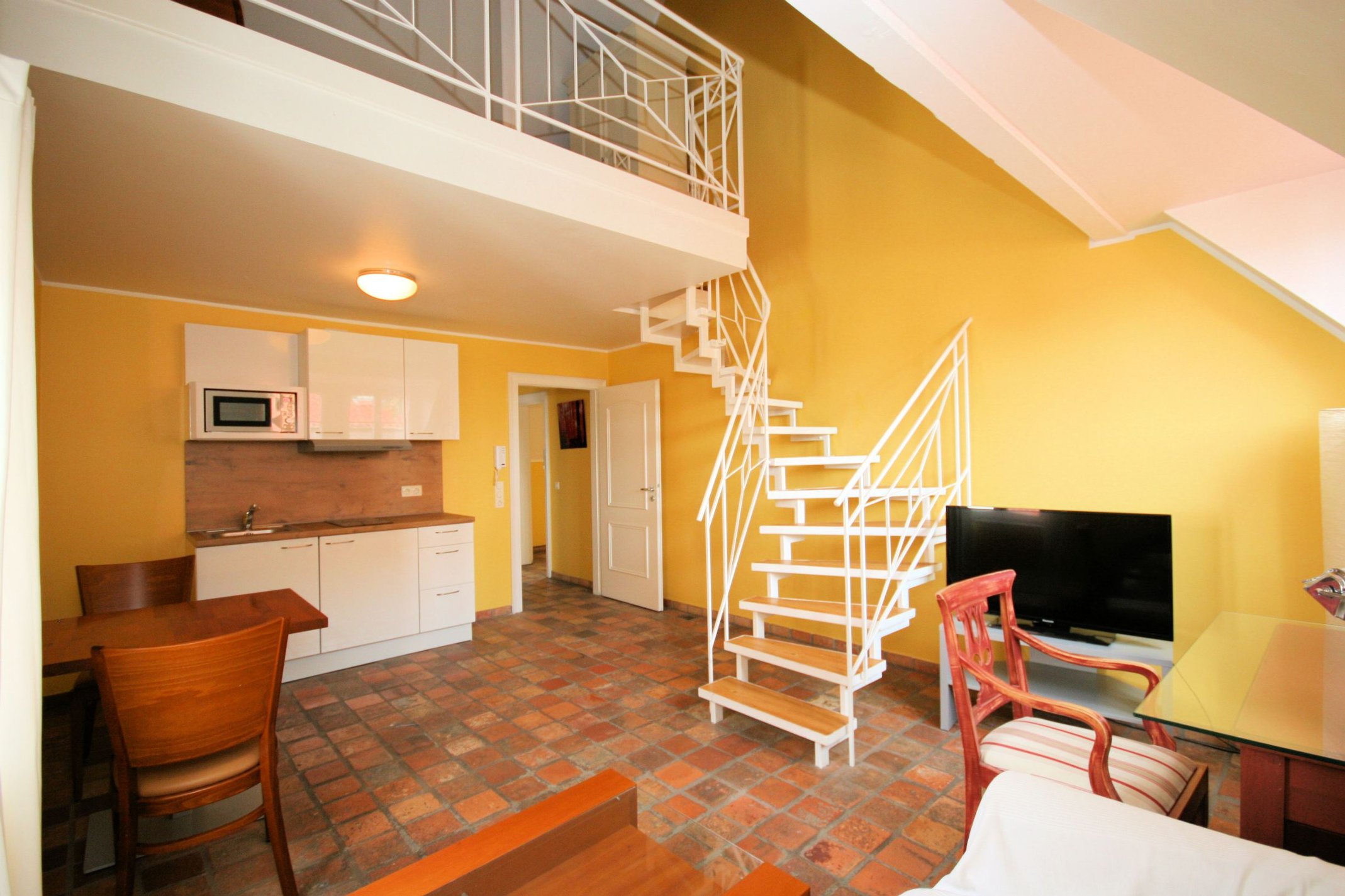 Die Küche, Möbel (z.B. Bett, Schrank, Couch, Tisch, TV, usw.) sind in der Miete bereits enthalten.